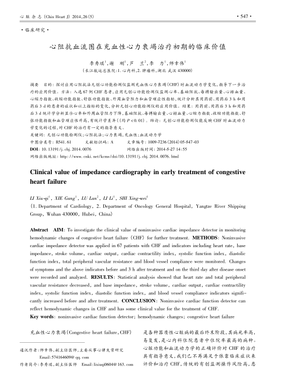 心阻抗血流圖在充血性心力衰竭治療初期的臨床價值